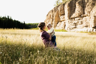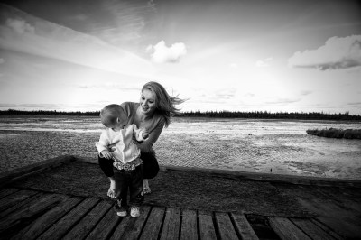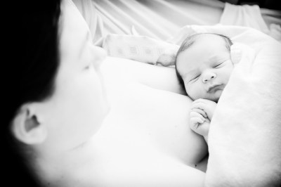 black and white mom and baby